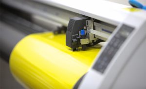 El vinilo de corte es una película autoadhesiva utilizada para la decoración y la rotulación de superficies planas tanto en interiores como en exteriores. Se troquela con un plotter (máquina de corte que permite cortar formas tanto de pequeño como de gran tamaño). Este vinilo tiene el mismo color por la superficie adhesiva